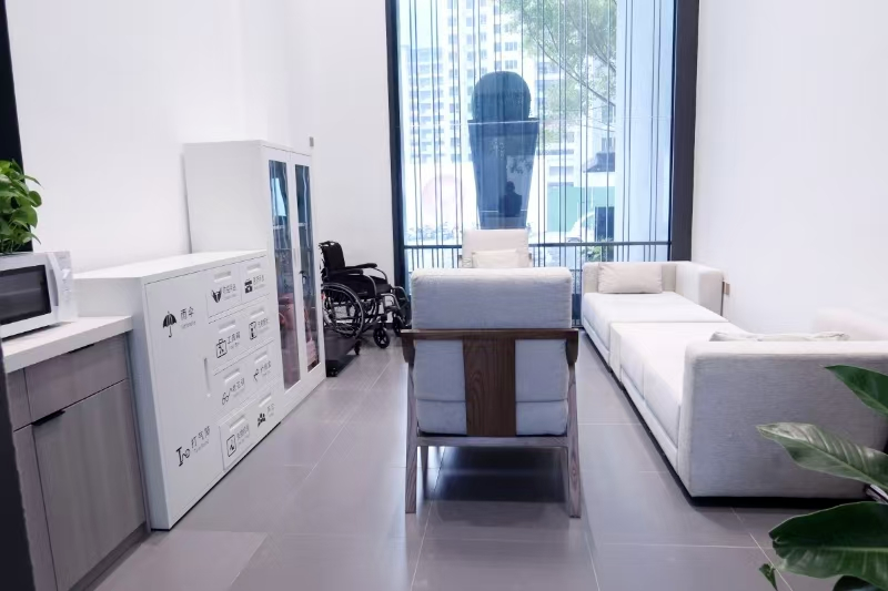 适老化扶手,便利老年人士出行,随处可见紧急呼叫按钮等,方便遇到紧急情况时求助。